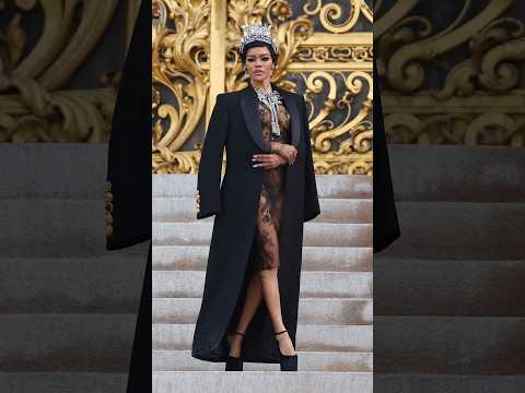 TEYANA TAYLOR attends the Schiaparelli Spring/Summer 2026 Haute Couture Show in Paris wearing ’a sharp-shouldered transparent top in black chantilly lace with a matching pencil skirt’. ’The...