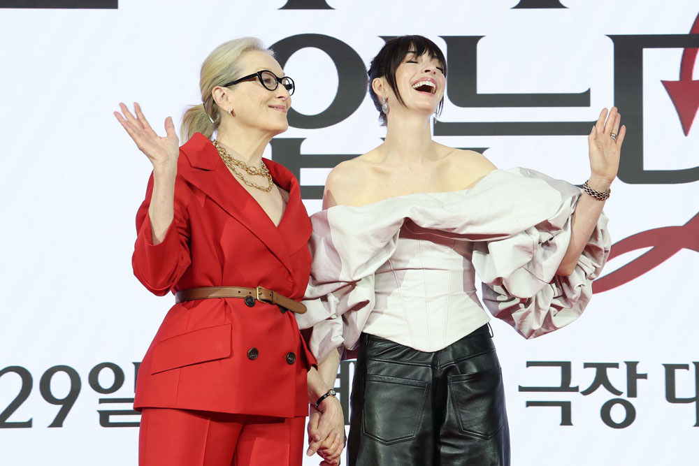 TDWP 2 PRESS TOUR ’would also appear, based on these outfits and the ones they wore yesterday, that they’re taking a Wicked/Barbie approach of restricting their outfit colors to the film’s branding: red, white and black’ (TLo)_.