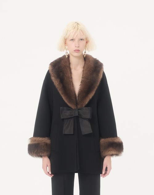 ...a Valentino shearling-trimmed wool and cashmere peacoat while Khloe favoured...